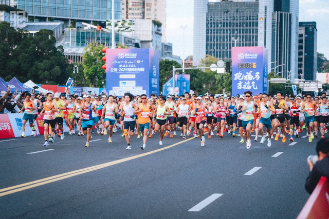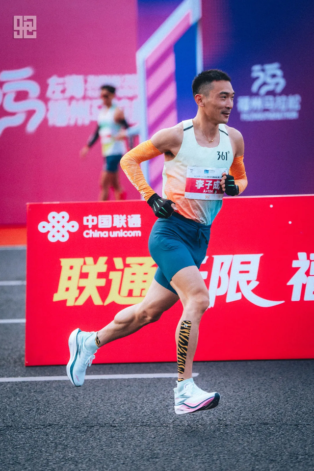 当李子成竣事颁奖,死后赛道的终点拱门下仍有重大跑者群体在冲线,这个画面组成了福州马拉松最形象“征福”场景。