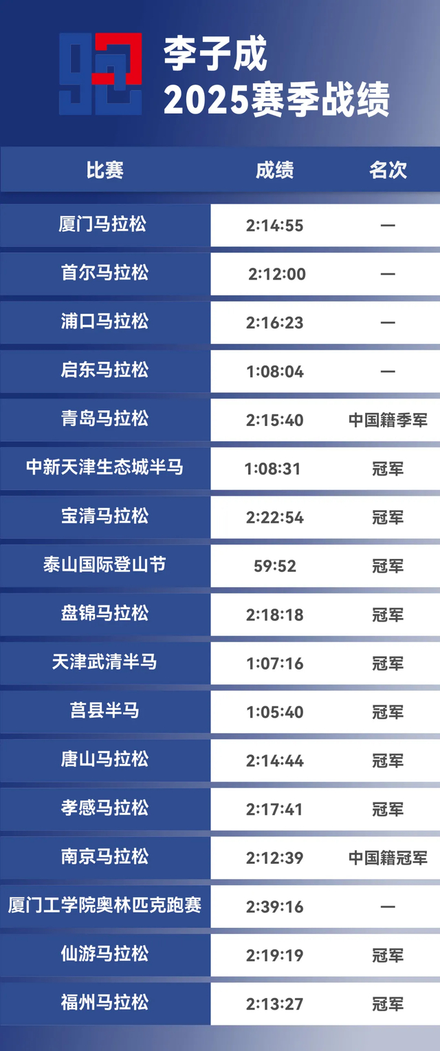 管油胜、王佳浩、岑万江、罗国顺、王红伟、邵思爽……213之内水准的选手云集,年底收官战上,职业跑者们可谓良将尽遣。李子成在如许的声势下,再度成了最优异的那一个。